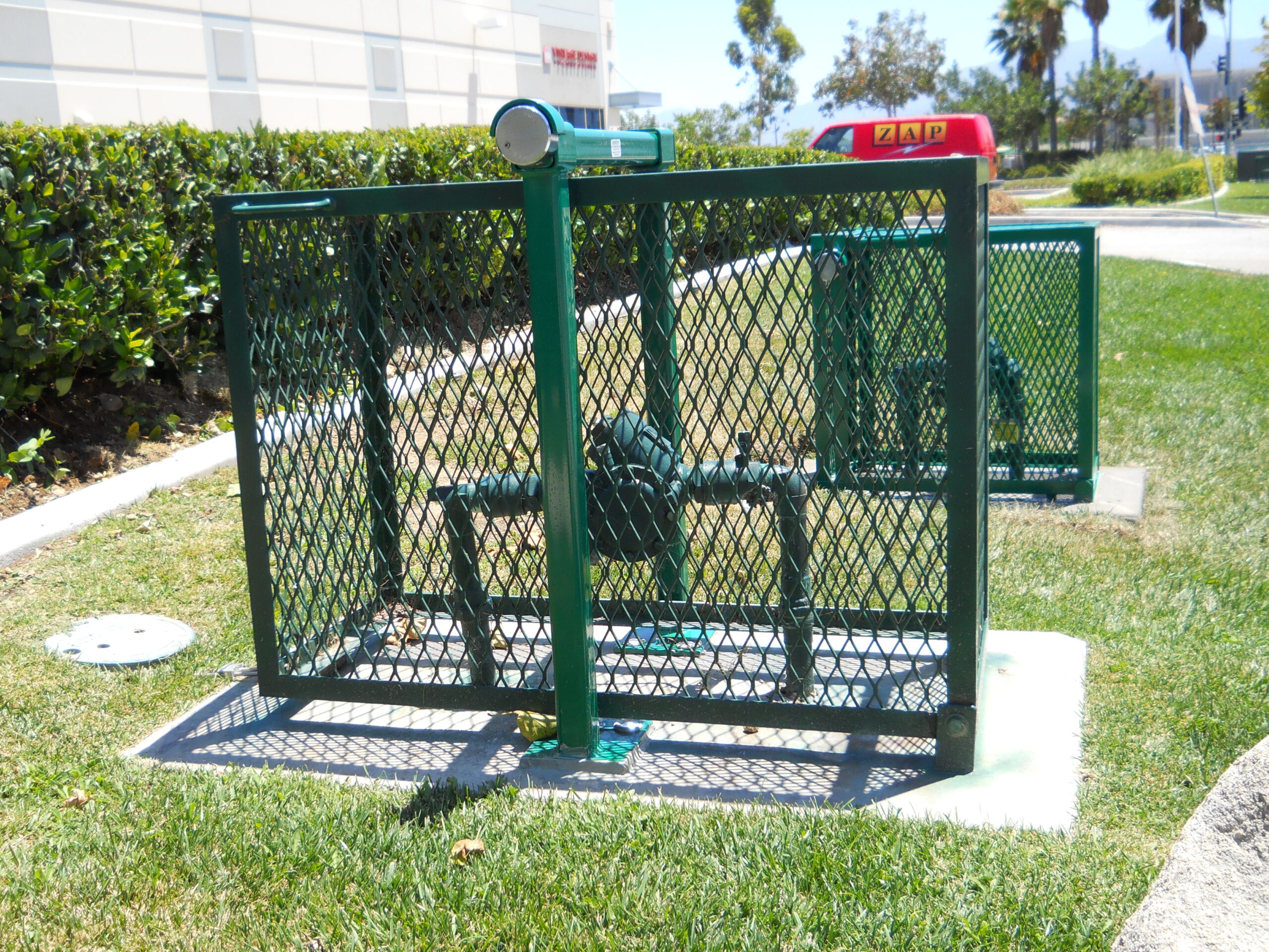 The Sentry Cage Enclosure Lock Down (SCLD) is mounted to the existing concrete slab. The heavy duty steel Legs & Lock Bars are fitted with internal tubing to prevent cutting through. Legs are secured to the slab inside of the cage. Heavy Duty Puck Lock and Mounting Hardware for secure installation is provided.